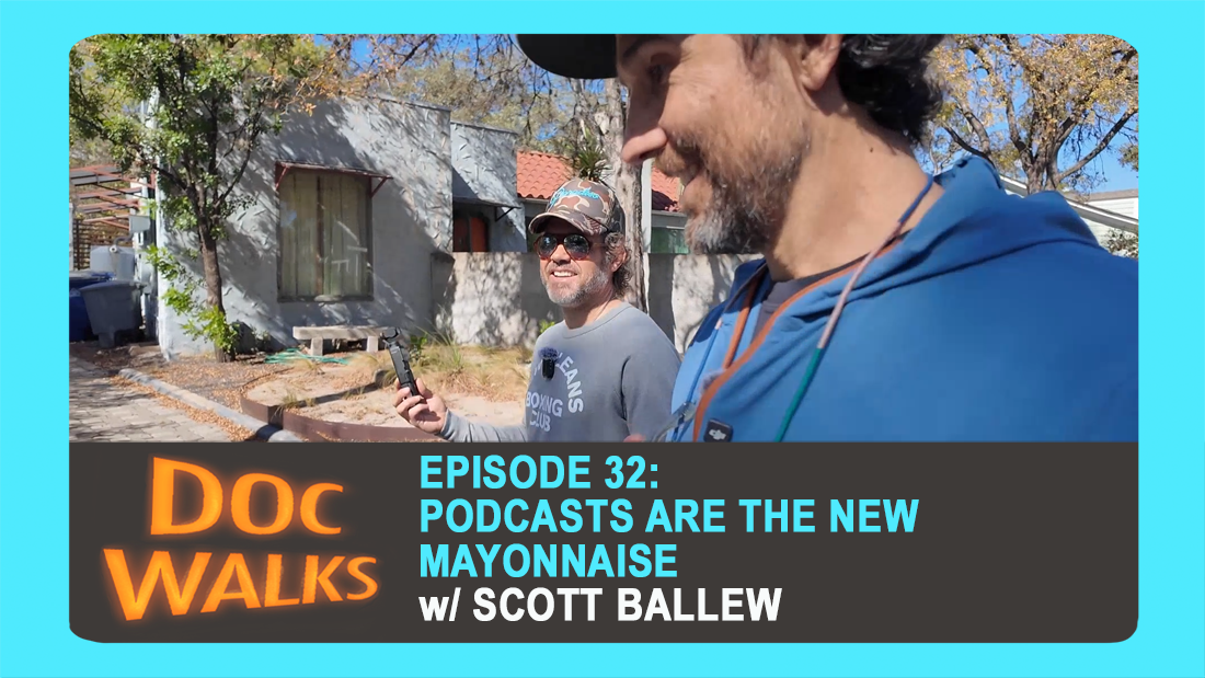 DOC WALKS EP033 -the stone peacock w/ david modigliani EP032 - Podcasts Are The New Mayonnaise w/ Scott Ballew EP031 – Opportunity Calls! w/ Patrick Heaphy EP030 - I’m with the people (and the butterflies) w/ rena effendi EP029 - What Should We Call This Episode w/ Chelsea Hernandez EP028 - Go To Church: Watch Movies w/ Megan Gilbride EP027– living the dream with mike blizzard EP026 – Literally Don’t Do This, But Don’t Do This Literally with Alex Ross Perry EP025 – I’m Not Sure That’s A Sculpture with Hillary Pierce EP024.5 – Matt and Bob Morning Show Meets Doc Walks EP024 - Golden Moments with Maureen Gosling EP023 - I’m Not A Pirate Anymore (But I Used To Be) with Bradley Beesley EP022 – Fall Is Falling EP021 – LIFE AFTER with Reid Davenport and Colleen Cassingham EP020 – A Shared Reality with Richard Whittaker EP019 – DocTalks with Dr. Paul Stekler EP018 – Greg Kwedar Meta On Meta On Meta EP017 – Through the Portal with Reed Harkness EP016 – Ben & Keith Look Back To Look Ahead EP015 – Do Your Thing with Kevin Willmott EP014 – Low Moments in Documentary with Jesse Moss and Amanda McBaine EP013 – Go To the Love with Sandi DuBowski EP12 – Avril Speaks and We Listen EP11 – No Wasted Steps with Kahane Corn Cooperman EP10 – Spring Is In The Air EP09 – The Watering Hole, Live from the Austin Film Society EP08 – Caught Between Torment and Anguish with John Sloss EP07 – A Story That Went Nowhere with Charlie Shackleton EP06 – Matt Wolf As Himself EP05 – Rosy on Rosy with Adam Bhala Lough EP04 – Gardener (Not A Carpenter) EP03 – Start With the Story with Diane Quon EP02 – Look Out For the Ice! – Live From Sundance EP01 – The Pilot OR Two Dipshits Talking About Birds